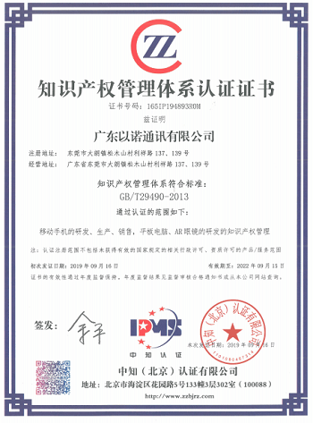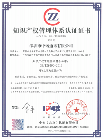 2019年9月,福日電子成員企業(yè)深圳市中諾通訊有限公司、廣東以諾通訊有限公司先后通過知識(shí)產(chǎn)權(quán)管理體系認(rèn)證,進(jìn)一步推進(jìn)公司知識(shí)產(chǎn)權(quán)管理工作規(guī)范化、系統(tǒng)化、科學(xué)化,提升企業(yè)核心競(jìng)爭力。