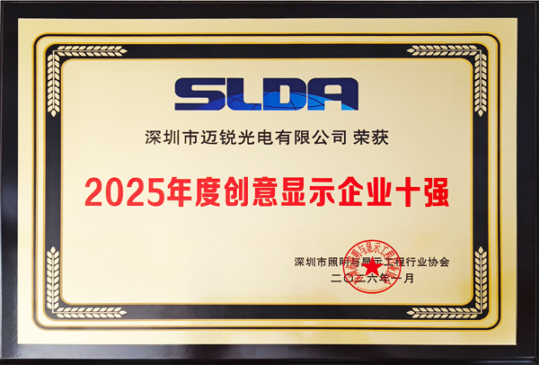 創(chuàng)意之光,閃耀業(yè)界——邁銳光電榮登“年度創(chuàng)意顯示企業(yè)十強(qiáng)”